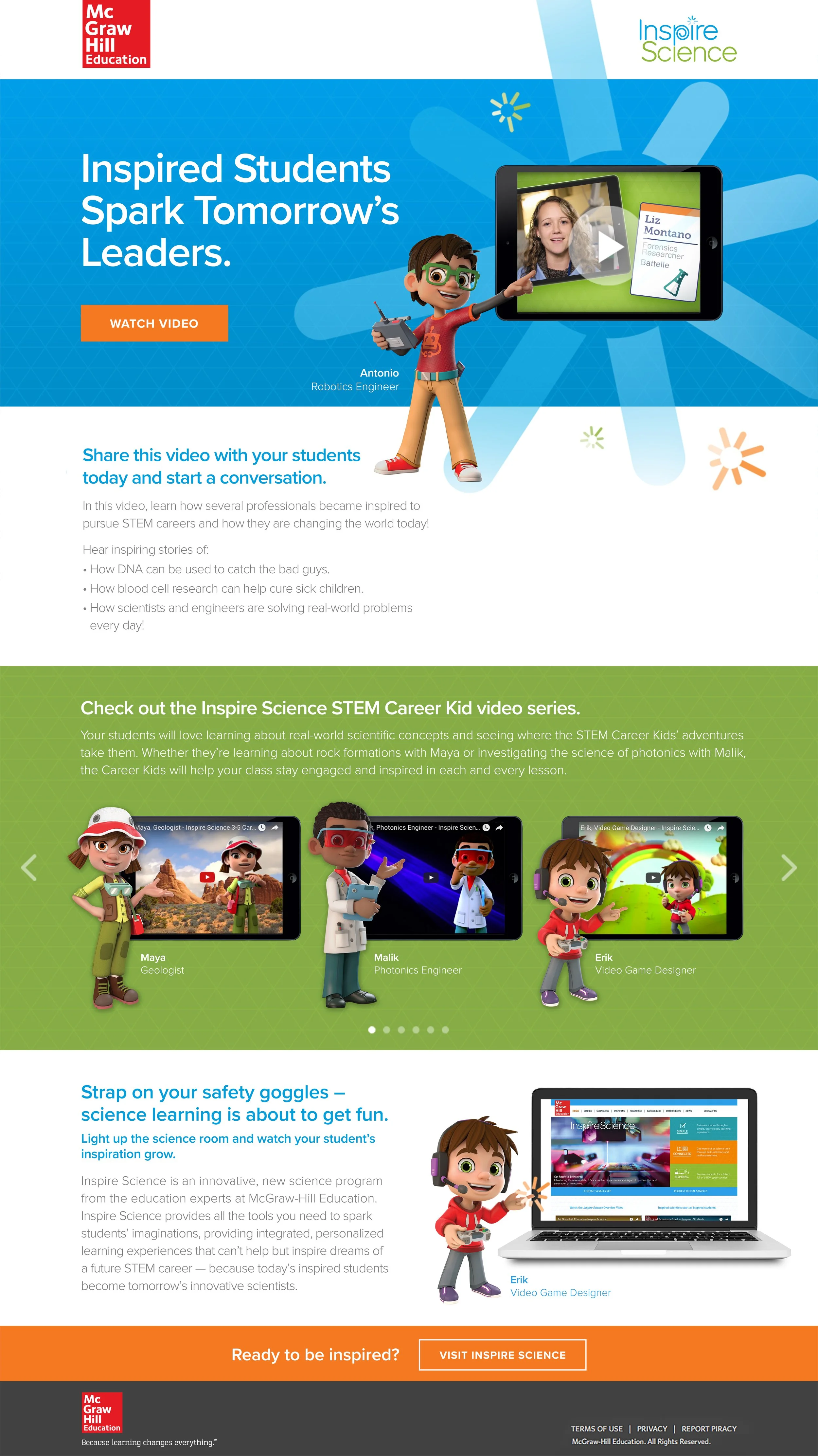 At Minds On I was tasked with developing concepts for McGraw Hill’s product launch of their new K-5 STEM-inspired learning program, Inspire Science.